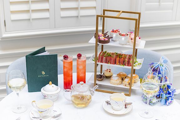 Indulge in the timeless tradition of afternoon tea at Botanica, 100 Queen’s Gate Hotel. Set in a stunning atrium adorned with cherry blossoms and greenery, it beautifully reflects South Kensington’s Victorian charm, right in the heart of London.